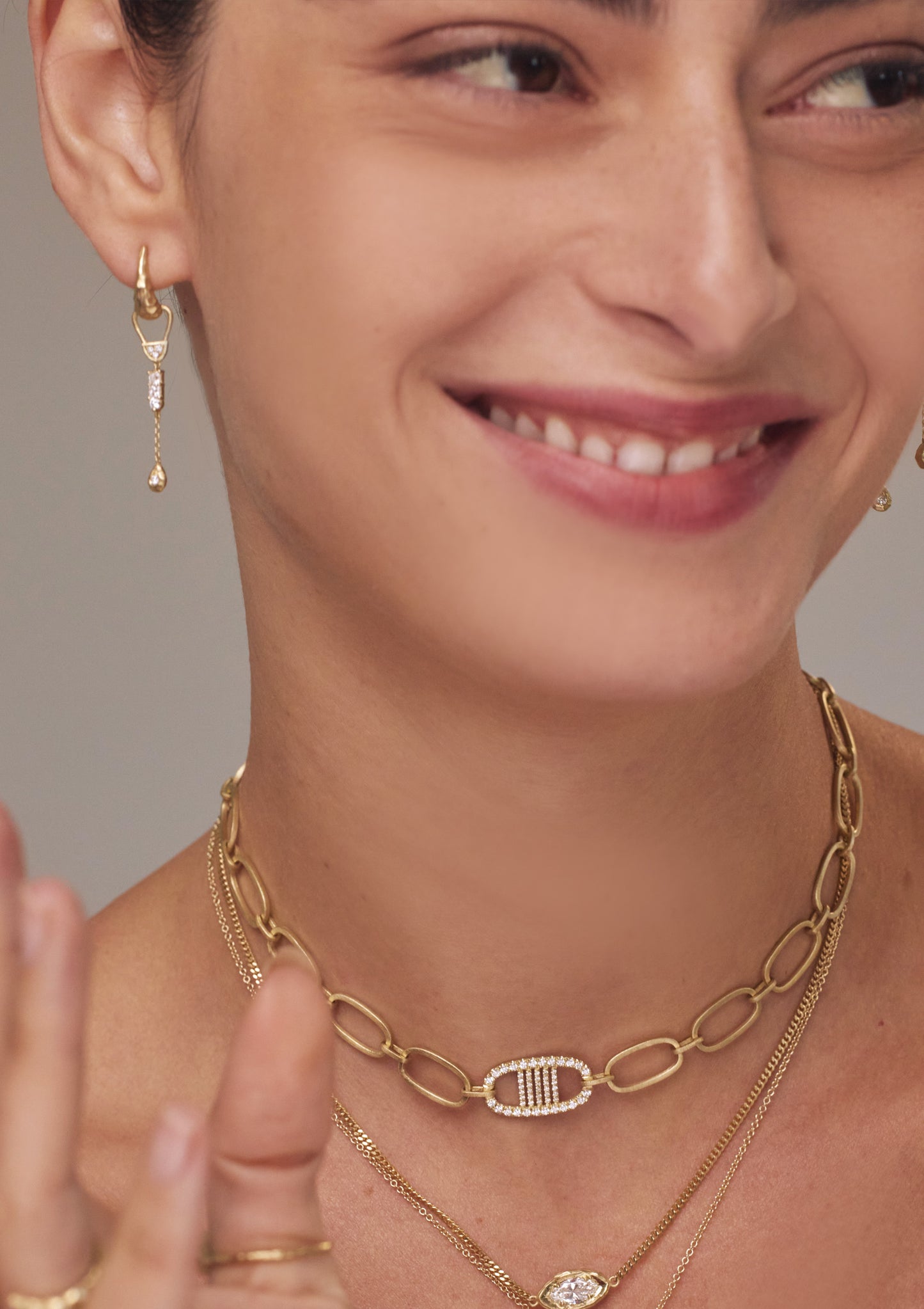 The Flame Earrings ignite a sense of movement and passion through their sculptural, molten-gold design. Each earring begins with a pointed, flame-like top that flows organically into a sequence of diamond-set elements, delicately connected by a fine gold chain. The elongated silhouette creates an elegant sway with every motion, catching the light in soft, flickering reflections. Handcrafted in 14K gold with a raw, hammered texture, these earrings embody the spirit of transformation — bold, radiant, and endlessly captivating.
